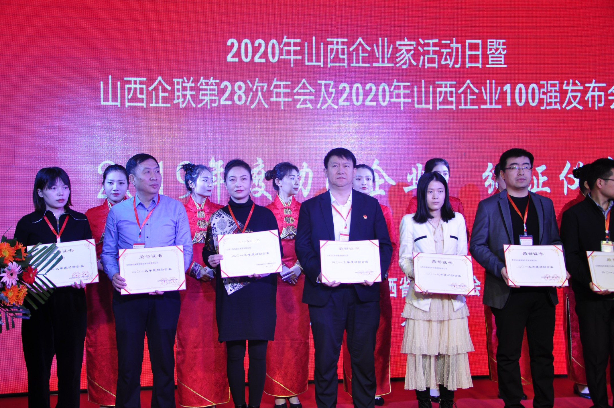 11月6日,以“勇于擔當奉獻、彰顯企業(yè)家精神、促進變革中的大企業(yè)發(fā)展 ”為主題的2020年山西企業(yè)家活動日暨山西企聯(lián)第28次年會及2020年山西企業(yè)100強發(fā)布會在太原舉行。山西大正保安服務有限公司榮膺“2020山西服務業(yè)企業(yè)100強”、“2019年度功勛企業(yè)”兩項榮譽稱號;公司黨委書記、董事長張躍生榮獲“2019年度功勛企業(yè)家”。公司黨委副書記、總經(jīng)理趙培宏,黨委副書記、副總經(jīng)理陳志平前往參會。趙培宏作為獲獎企業(yè)代表上臺領取“2019年度功勛企業(yè)”獎項。