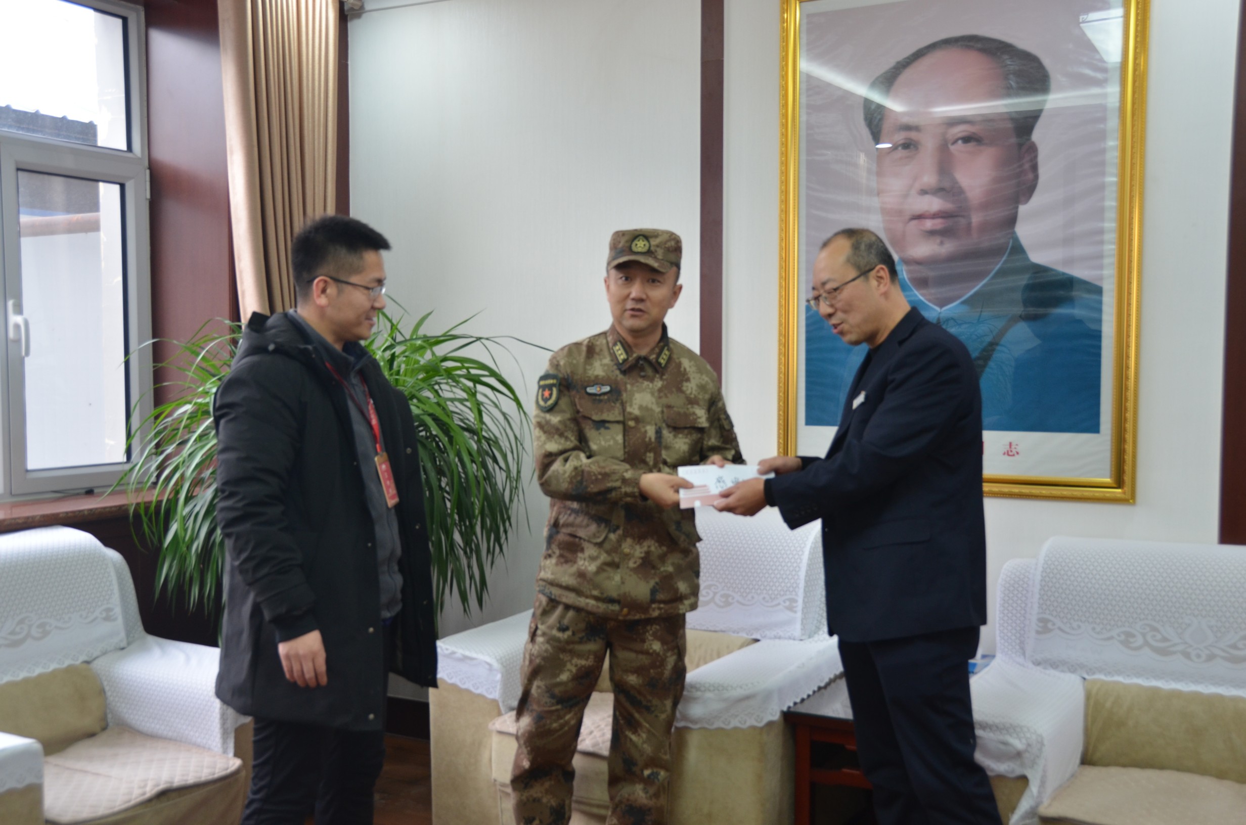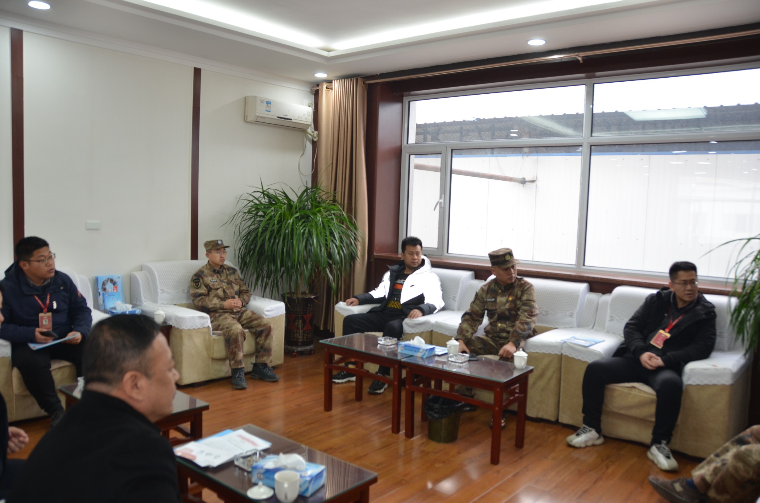 2月10日,忻府區(qū)人武部部長李強和忻州古城相關(guān)負責人一行五人為物業(yè)公司民兵應急連送來一封熱情洋溢的感謝信,與集團公司黨委委員、副總經(jīng)理王明生等領(lǐng)導座談交流。