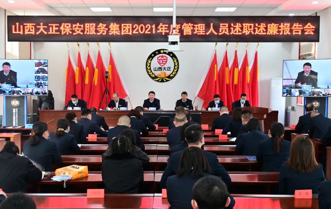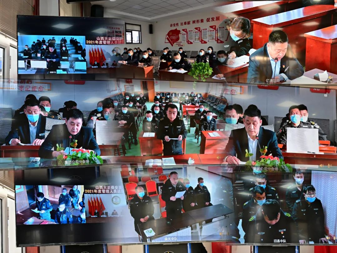 2022年1月8日-9日,山西大正保安服務(wù)集團(tuán)有限公司召開2021年度管理人員述職述廉報(bào)告視頻會(huì)議,大會(huì)主會(huì)場(chǎng)設(shè)立在總部會(huì)議室,黨委副書記、總經(jīng)理趙培宏出席會(huì)議并作重要講話,黨委副書記、副總經(jīng)理陳志平主持會(huì)議,公司黨政領(lǐng)導(dǎo)班子成員出席會(huì)議,各部門負(fù)責(zé)人及員工代表參會(huì),各分公司、子公司、各縣市基層中隊(duì)共計(jì)21個(gè)分會(huì)場(chǎng)以視頻方式參會(huì)。