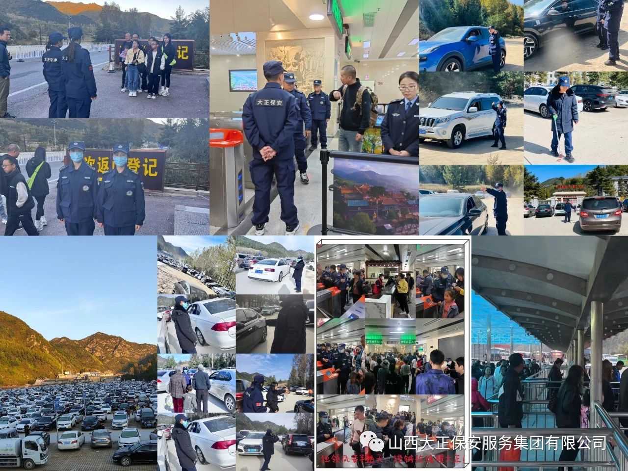 9月28日下午,山西大正保安服務集團有限公司抽調(diào)精兵強將200余人,開赴五臺山風景區(qū)執(zhí)行勤務,全體出勤隊員精神煥發(fā),士氣高昂,整裝出發(fā),他們舍棄“中秋”與家人的團聚,放棄“雙節(jié)”假日休息的機會,以大局為重,忠誠奉獻,擔當作為。當晚指揮部與五臺山風景名勝區(qū)管委會協(xié)調(diào)溝通,確定執(zhí)勤崗位及人數(shù),9月29日全員上崗,開始為期一周的安保勤務工作。執(zhí)勤隊員24小時不間斷對游客、車輛進行指導、指引,確保游客行得順、玩得暢。10月5日上午,此次安保勤務工作圓滿完成。