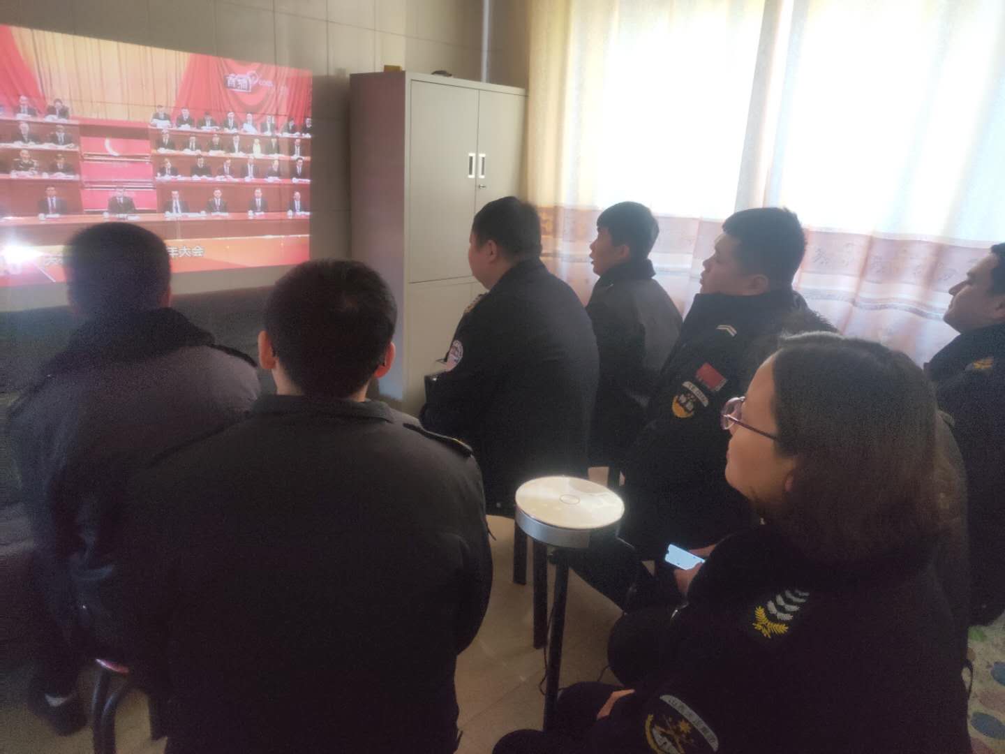 (守押軒崗中隊(duì)組織收聽(tīng)、收看大會(huì))