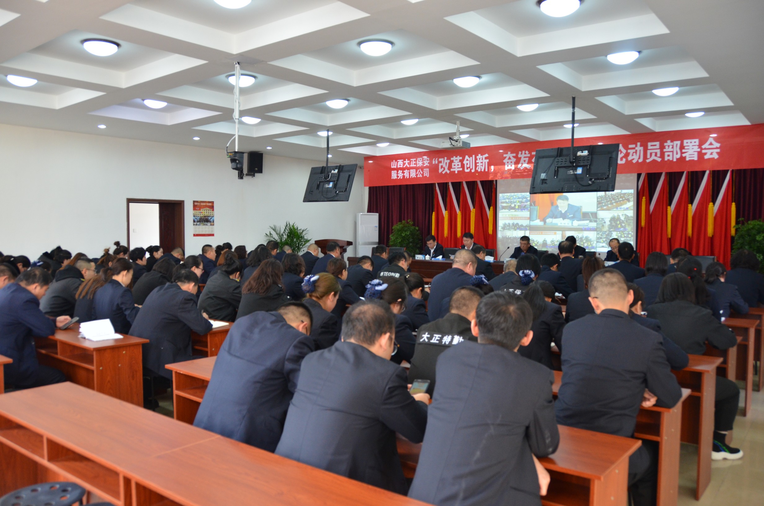 近日,山西大正保安服務(wù)有限公司召開(kāi)“改革創(chuàng)新、奮發(fā)有為”大討論動(dòng)員部署會(huì),會(huì)議以視頻的形式召開(kāi)至基層各單位。公司黨政領(lǐng)導(dǎo)班子、機(jī)關(guān)各中心(室)、基層各單位全體員工參加會(huì)議。黨委副書(shū)記、副總經(jīng)理陳志平主持會(huì)議。