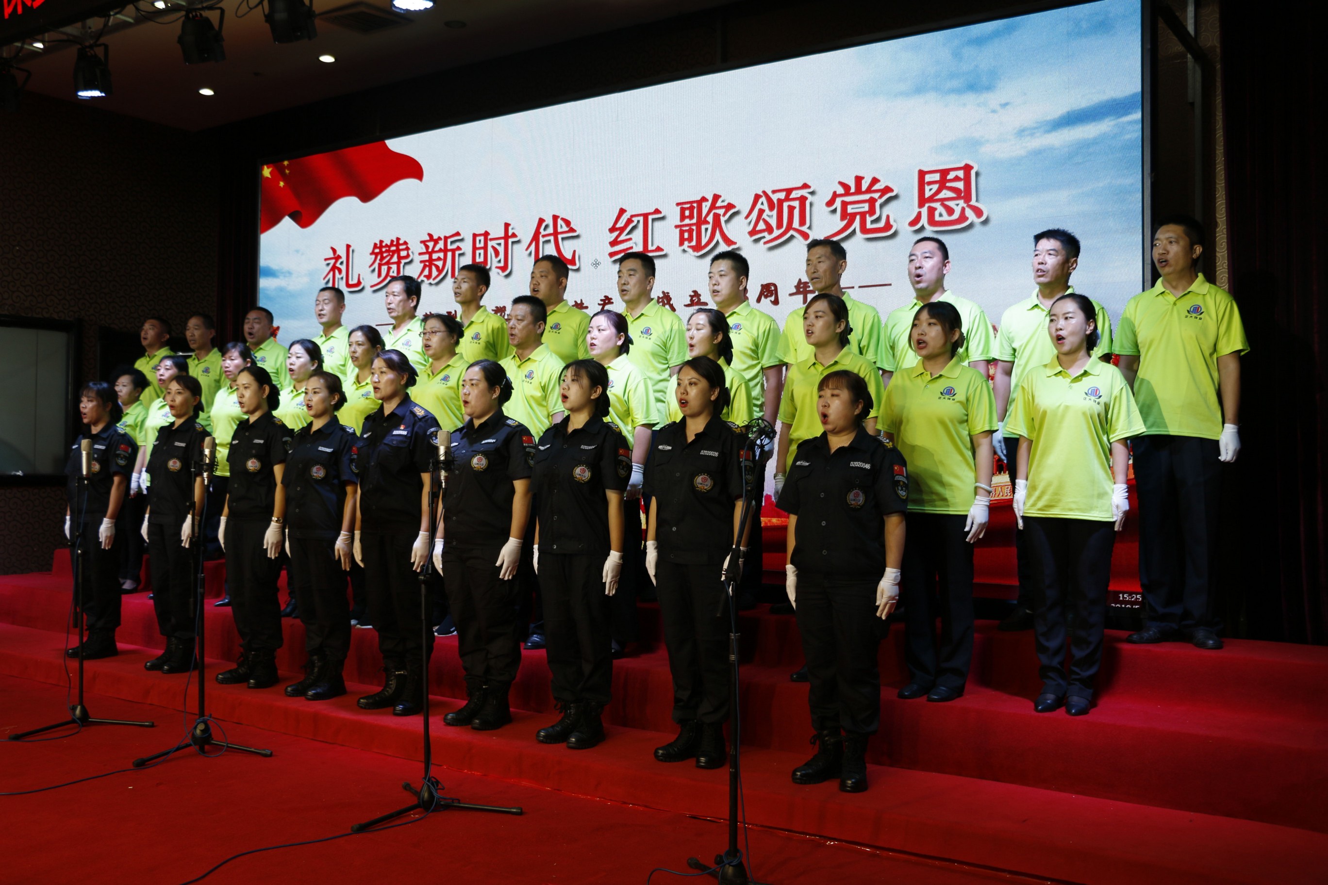 來(lái)自機(jī)關(guān)和基層黨支部組成的六支參賽隊(duì)伍,用他們滿腔的熱情和昂揚(yáng)的斗志,歌詠了他們對(duì)黨、對(duì)國(guó)家、對(duì)社會(huì)主義及大正保安公司的熱愛(ài)!稕](méi)有共產(chǎn)黨就沒(méi)有新中國(guó)》、《歌唱祖國(guó)》、《團(tuán)結(jié)就是力量》、《打靶歸來(lái)》等一首首耳熟能詳?shù)馁澑琛⒖廴诵南业臉?lè)章此起彼伏,使人聽(tīng)之熱血沸騰,打動(dòng)著現(xiàn)場(chǎng)每一位觀眾,贏得了陣陣掌聲。