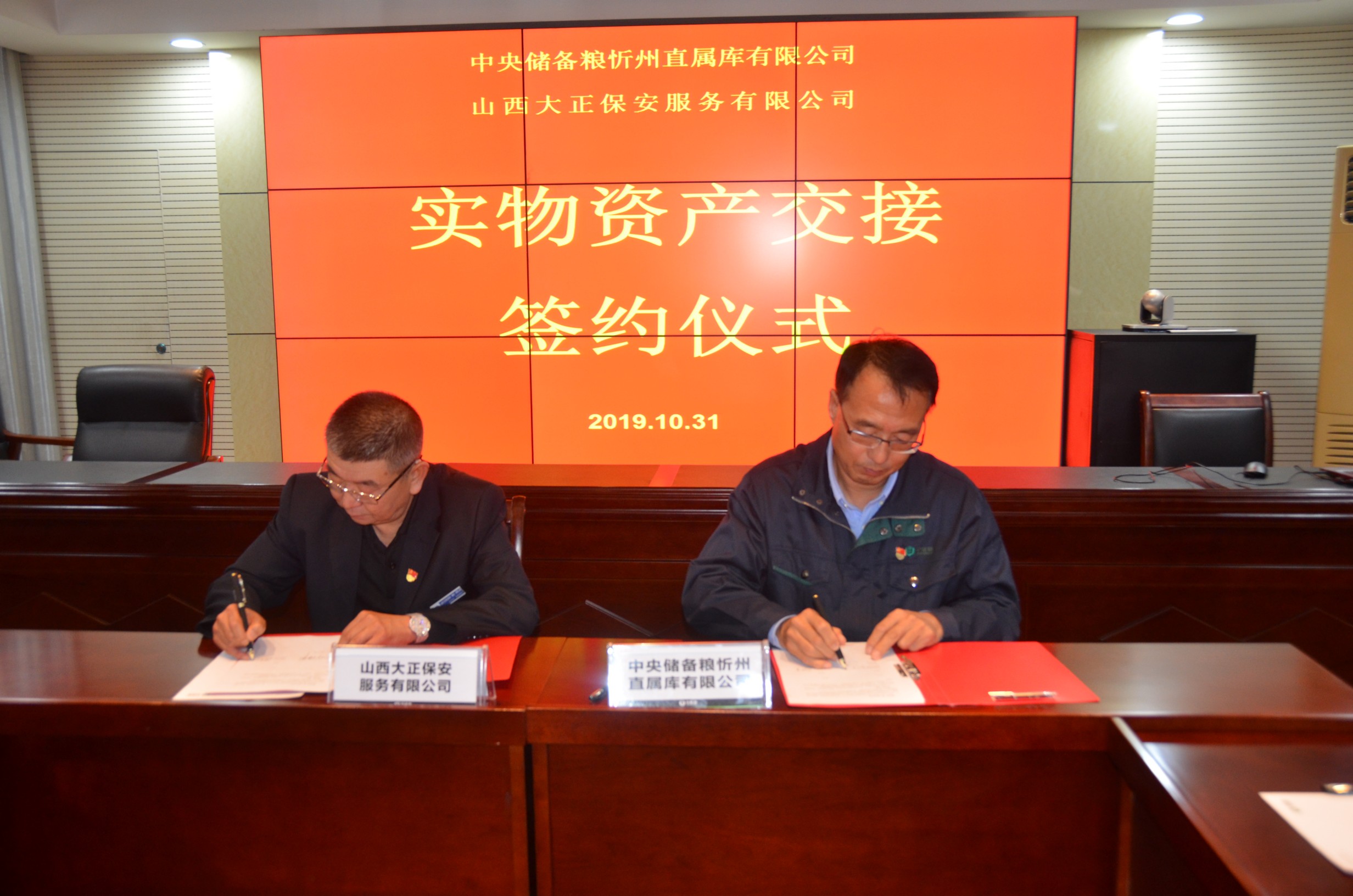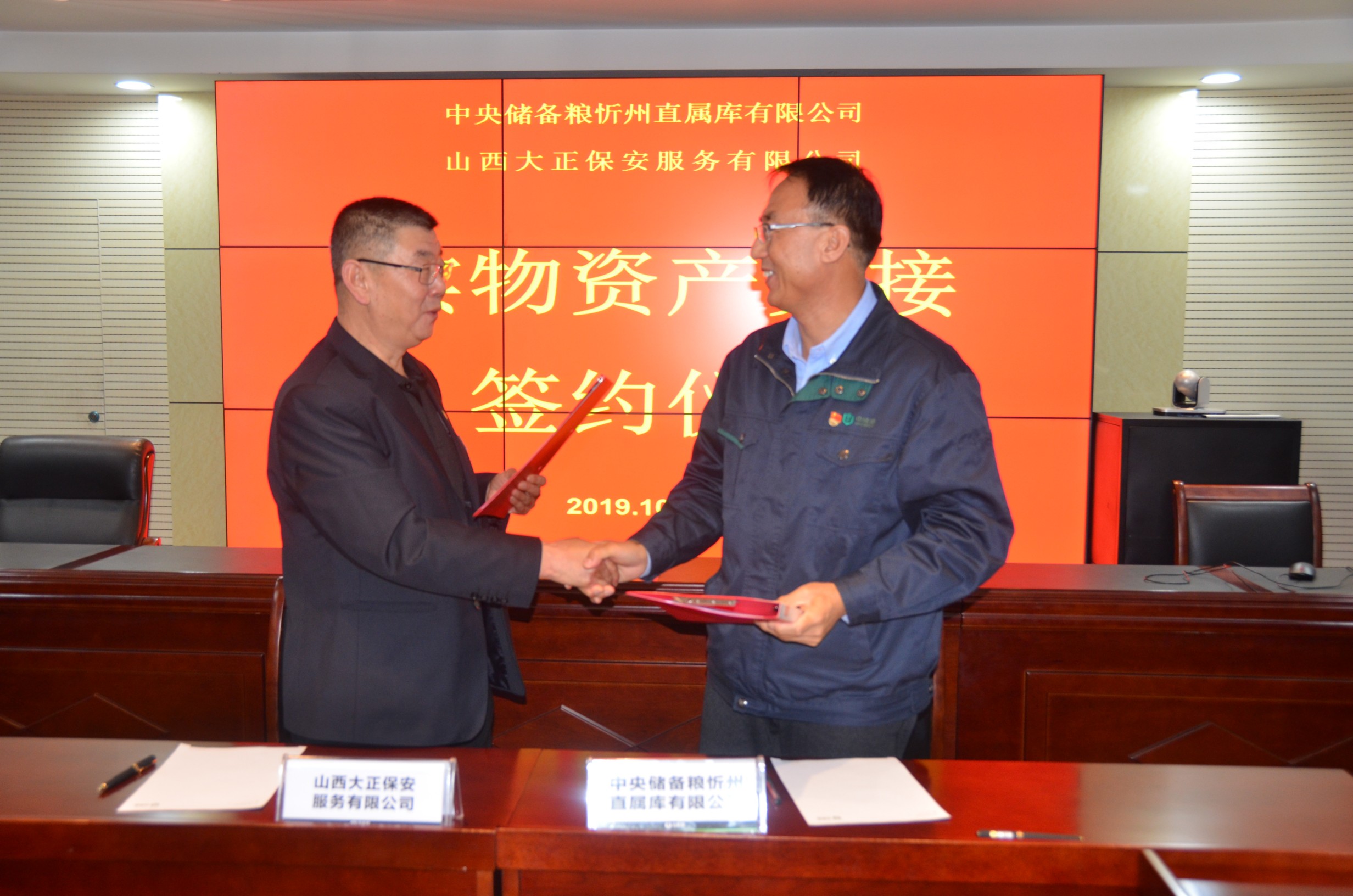 10月31日,山西大正保安服務(wù)(集團(tuán))有限公司與中儲糧忻州直屬庫有限公司在中儲糧忻州直屬庫有限公司會議室簽署資產(chǎn)交接協(xié)議,正式交接中儲糧忻州直屬庫有限公司轉(zhuǎn)讓的原紅鑫淀粉廠項(xiàng)目土地、建筑等資產(chǎn)。