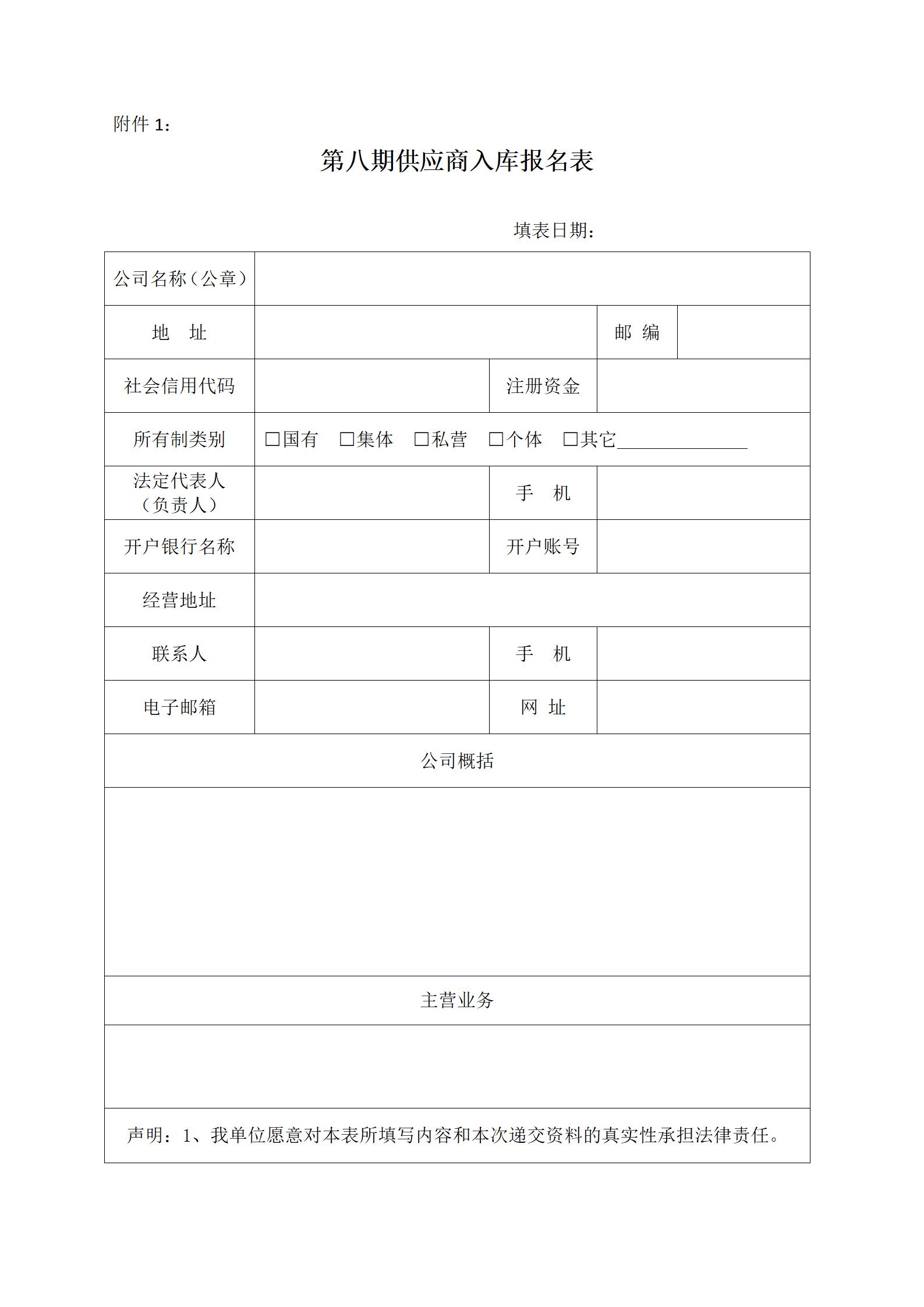 1、供應(yīng)商入庫報(bào)名表(見附件);