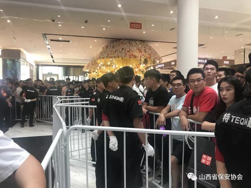 2018年7月15日,美國NBA著名球星德維恩-韋德“2018年中國行”品牌代言簽售會第三站在省會太原茂業(yè)天地隆重舉行,由于韋德作為籃球明星偶像,在中國知名度、關(guān)注度、影響力較高,深受青少年球迷的喜愛,粉絲眾多,加之活動現(xiàn)場又在人員密集的商場內(nèi)舉辦,不確定因素增猛,安保難度加劇,為確;顒影踩樌M行,按照太原市公安局的安排部署,太原保安服務(wù)有限公司抽調(diào)300余名保安員承接了此次安保任務(wù)。