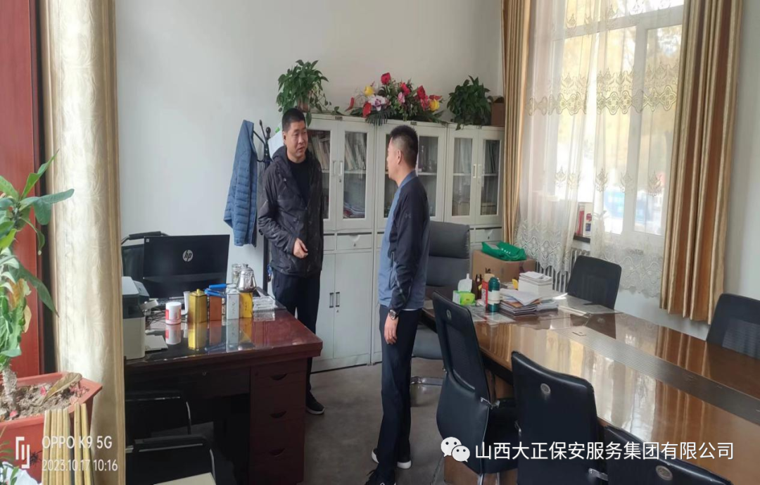 保安公司副經(jīng)理常文豹、直屬公司副經(jīng)理陳曉東、前往原平同德科創(chuàng)駐勤點走訪。對駐勤點各崗位進行實地查看對駐地隊員的生活、安全進行關懷,同德保衛(wèi)科陳科長就煤礦安全保衛(wèi)工作所面對的新形勢進行了深入探討和交流,對人員的調配和安排做了對接與部署,礦方對公司的服務質量表示高度認可,對咱們隊員的工作情況給與了充分肯定。