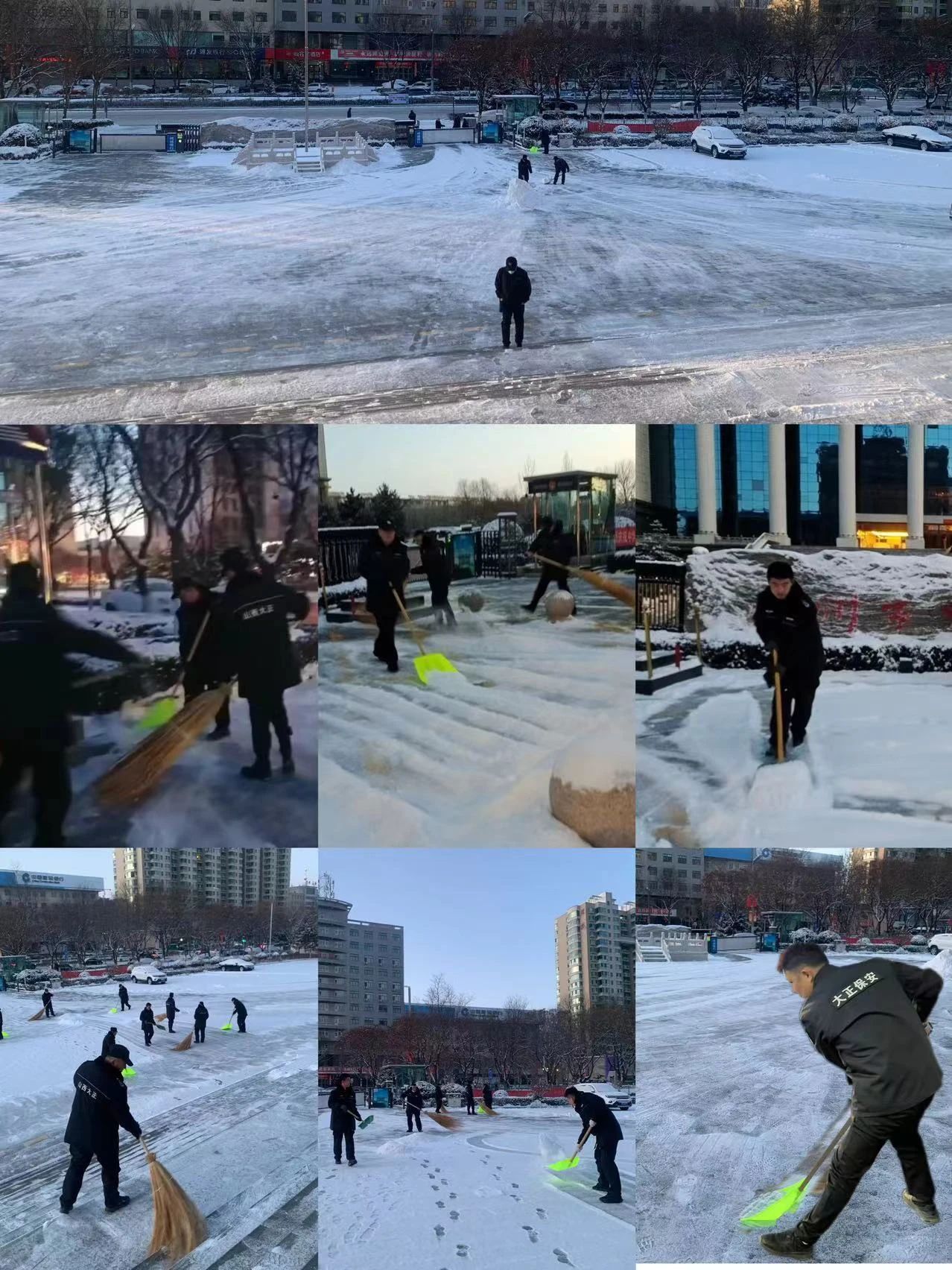 清掃積雪的工作看似簡單,卻充滿了挑戰(zhàn)。積雪已經(jīng)結(jié)成厚厚的冰層,路面濕滑,每一步都需要小心翼翼。盡管如此,保安隊伍從不畏懼嚴(yán)寒和困難,始終保持著高度的責(zé)任感,認(rèn)真負(fù)責(zé)地完成任務(wù)。無論是周邊的道路,還是進(jìn)出頻繁的停車場,哪里有積雪,哪里就有我們忙碌的身影。在大家的努力下積雪很快被清理干凈,確保了每條道路暢通無阻,為客戶單位提供了一個安全、便捷的環(huán)境,為市民的安全出行保駕護(hù)航。