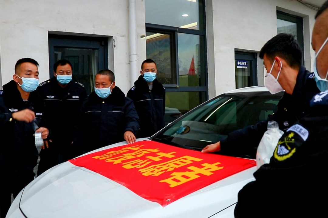 11日一早,中隊(duì)組織全員舉行歡送儀式。中隊(duì)長(zhǎng)韓振偉做了簡(jiǎn)短發(fā)言,安排執(zhí)勤人員做好各項(xiàng)安全工作,囑咐大家安心執(zhí)勤。期間家中有什么困難,一定要及時(shí)跟中隊(duì)溝通,中隊(duì)一定為大家解決后顧之憂。其他人幫忙將此行物資裝車完畢后,十位勇士乘風(fēng)而行,帶著大家的祝福向忻府集結(jié),預(yù)祝各位勇士凱旋而歸。