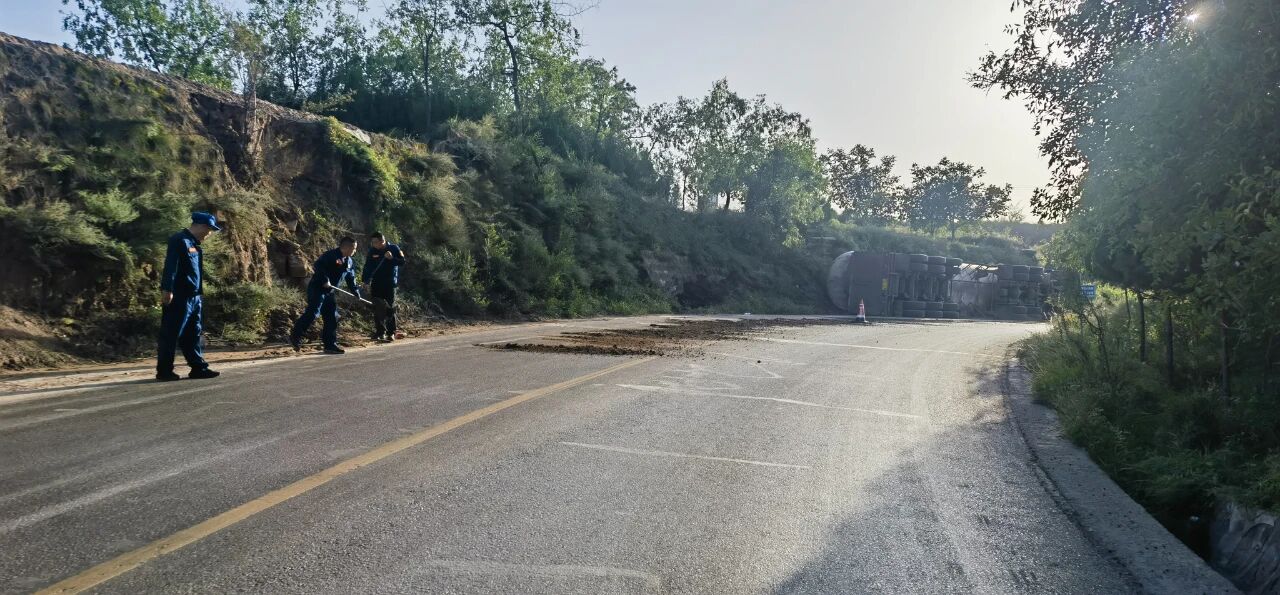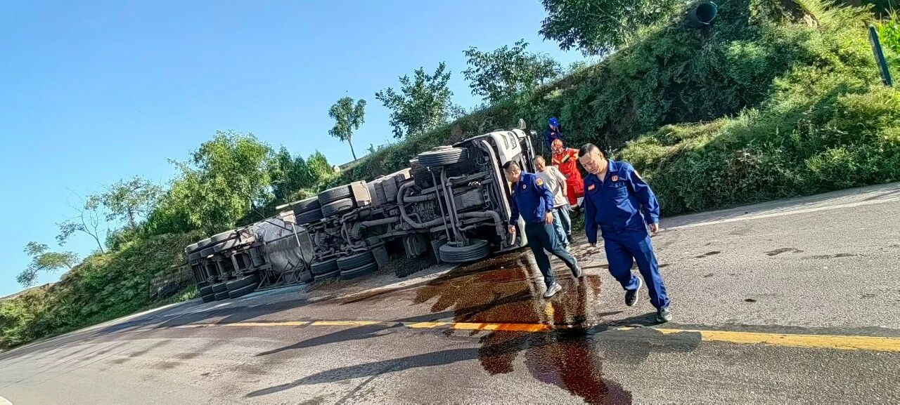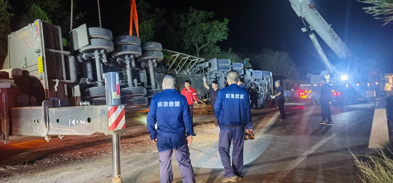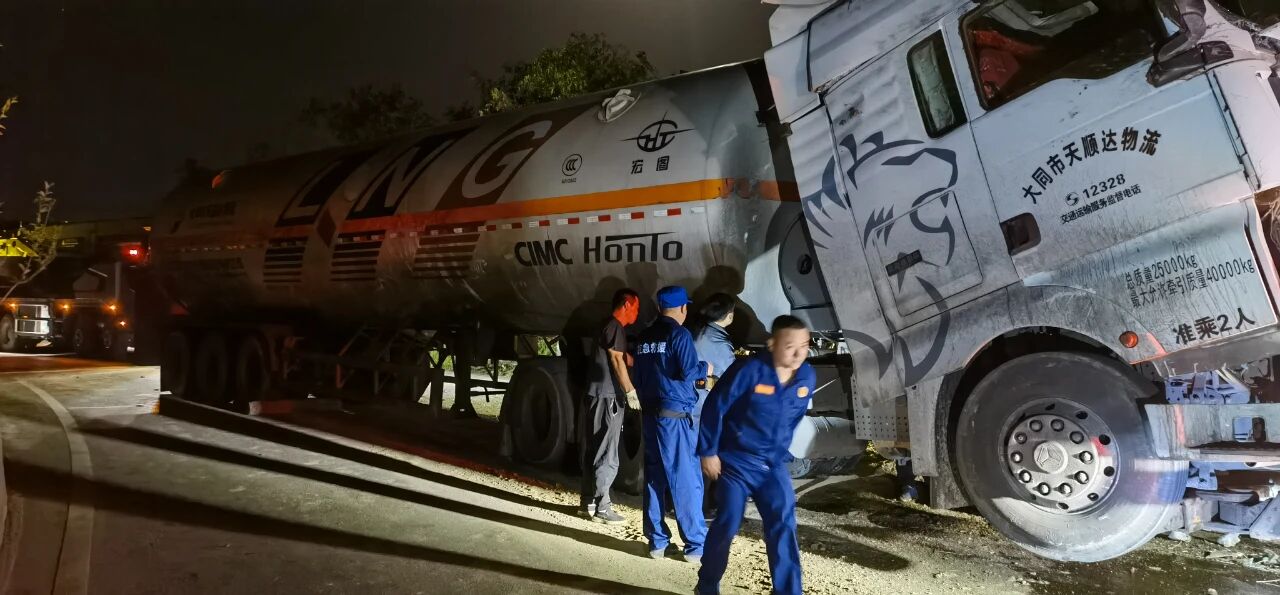 2025年9月6日,一輛裝載液化氣的重型半掛牽引車(chē)在土崖塔鄉(xiāng)寨上村附近路段發(fā)生側(cè)翻,現(xiàn)場(chǎng)情況緊急?h應(yīng)急管理局救援大隊(duì)、縣公安局、縣消防救援大隊(duì)、保德守押中隊(duì)?wèi)?yīng)急救援隊(duì)等多部門(mén)迅速響應(yīng),第一時(shí)間趕赴現(xiàn)場(chǎng)協(xié)同開(kāi)展應(yīng)急救援工作,全力守護(hù)群眾生命財(cái)產(chǎn)安全。經(jīng)現(xiàn)場(chǎng)查看,氣罐車(chē)罐體出現(xiàn)輕微變形,并伴隨機(jī)油等混合液體流出,液化氣具有易燃易爆特性,事故地點(diǎn)臨近村落,嚴(yán)重威脅了人民群眾生命財(cái)產(chǎn)安全和過(guò)境車(chē)輛安全交通安全。