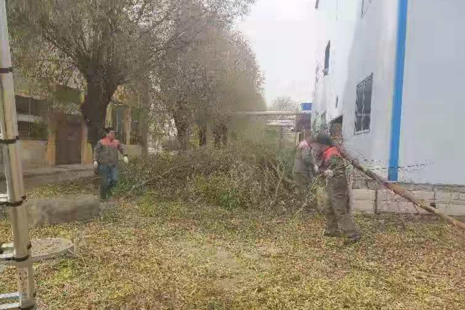有的同志在樹(shù)上使用工具修剪樹(shù)枝,有的則在地面撿拾枝葉,還有的用掃把清掃環(huán)境衛(wèi)生,全體參與人員分工協(xié)作,經(jīng)過(guò)連續(xù)兩天的緊張工作,院內(nèi)的樹(shù)枝全部修剪完畢,辛勤的勞動(dòng)換來(lái)了衛(wèi)生的整潔,保持了集團(tuán)總部辦公新址院內(nèi)的環(huán)境美觀。